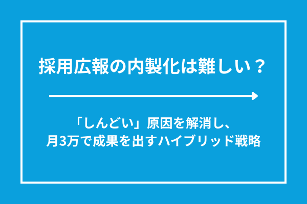 この記事では、採用広報のプロである私たちが、なぜ内製化がこれほどまでに苦しいのかその原因を論理的に解明します。その上で、忙しい経営者を巻き込みながら、リスクゼロでプロの力を借りる「ハイブリッド運用」という現実的な解決策をご提案します。